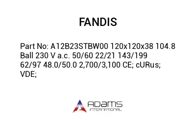 Description: FANDIS - A12B23STBW00 120X120X38 104.8 BALL 230 V A.C. 50/60 22/21 143/199 62/97 48.0/50.0 2,700/3,100 CE; CURUS; VDE;